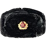 Faux fur russian ushanka hat with badge.